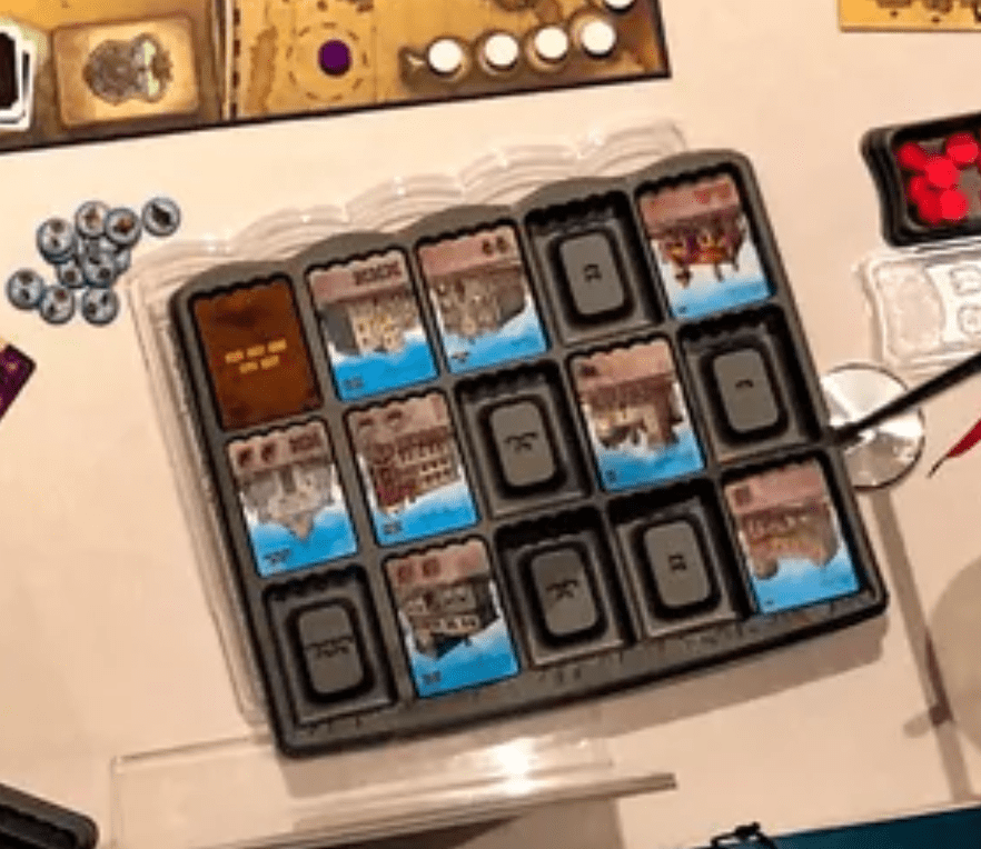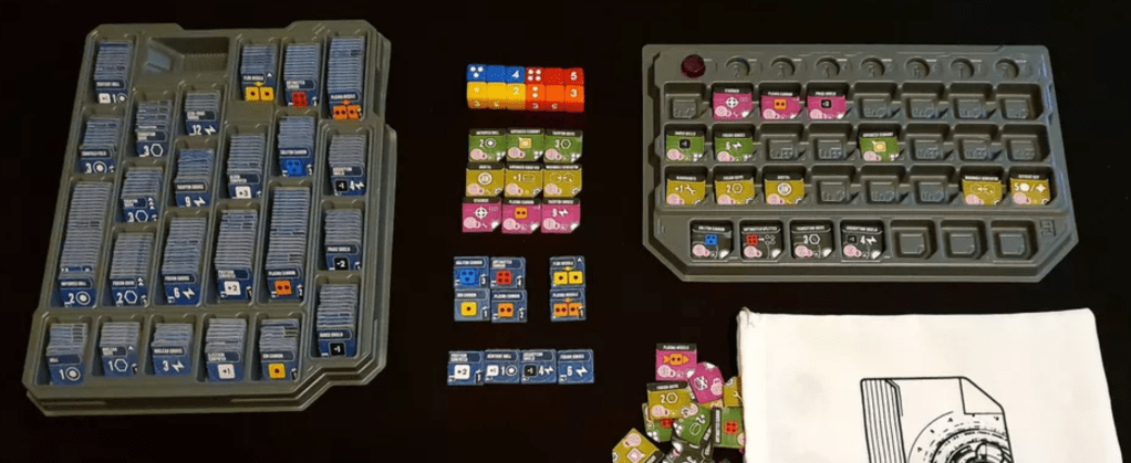 Another game with a similar mechanic is Eclipse: Second Dawn for the Galaxy. In this game, players have the chance to acquire tech tiles from a very wide variety. There can be 30 or more to choose from. In another action, players may add ship parts to their board. All of these interact, and you have to have the tech tile to get the ship part later. These two trays can easily be passed around so players can quickly identify what they can gain. The game would truly be a nightmare without these trays.