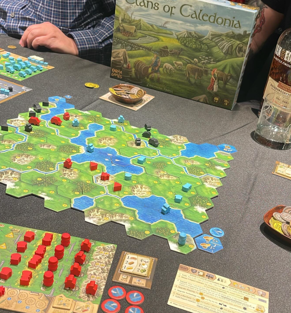 A good example of this is the game Clans of Caledonia. The central area of this game is super simple. There are no icons or other information. Its player pieces placed onto hexes. Each hex is a terrain type. And thats about as complex as it gets.