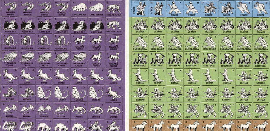 Sadly, one of the best ways to illustrate a point is to show some poor examples. Ironically, all of these come from games that I have loved. One of the worst kinds of tokens gamers have had to encounter is the tiny chits that came with RPG games in the 80s. These tiny little squares were such a pain. The ones below are from Star Frontiers. I would like to think we left terrible tokens like this in the past, but sadly, that is not the case.