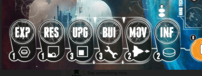 Finally, I want to look at Eclipse: Second Dawn for the Galaxy. In particular, I want to consider the way actions are presented in this game and how consistent they are, since this is one of the criteria of this metric in regard to player experience.