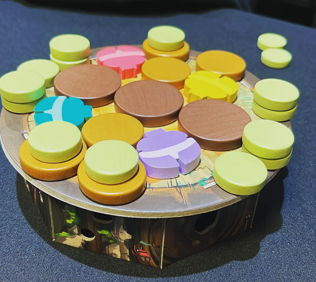 Fromage is a rather unique worker placement game in that it uses a rotating board. All play is simultaneous, and each player can only interact with the “wedge” in front of them. This is one way the physical form reinforces the rules, but there is more. Each turn, you recall workers that are facing you since they rotate with the board. This means that some jobs take longer than others. Finally, the wedge shape slots you use on the board ensure that you don’t misinterpret things. As such, it really is nearly impossible to mess up while playing thanks to the physical form of the game.