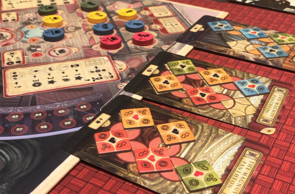 Sometimes it is the small details that make a game’s form reinforce the rules. In Trickerion, you gain cards with squares and circles on them. You also acquire the squares, as shown in the image below. Those squares fit nicely onto the cards in the designated spaces. Even more, the design on the card aligns with the circles. All of this makes it very obvious how to place these tokens. It is one aspect of the rules that is streamlined thanks to the graphic design of the cards and shape of the tiles.