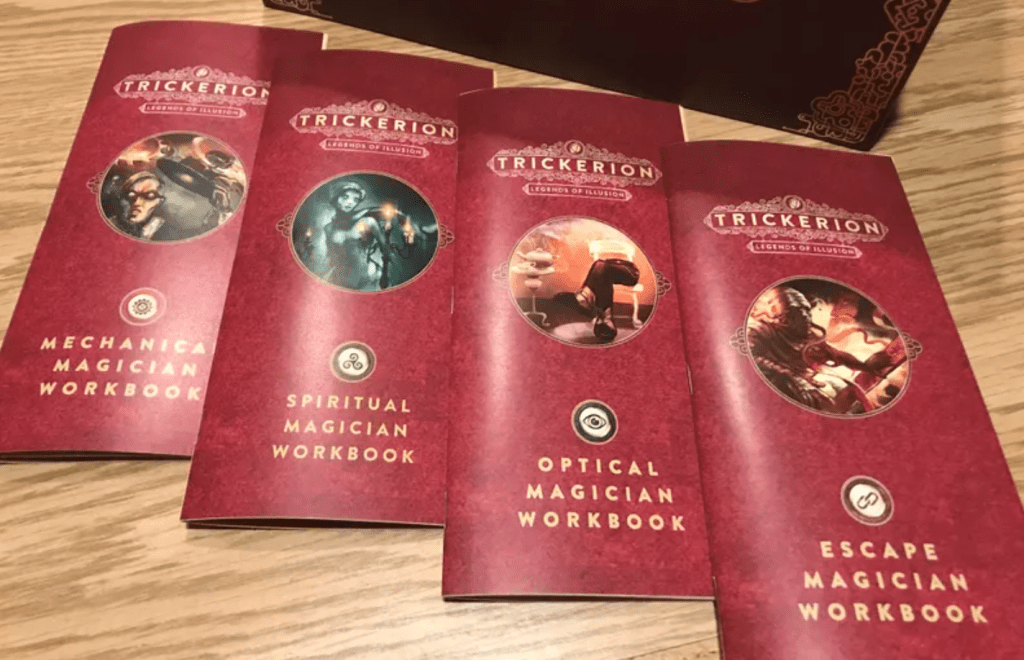 Some games make use of the concept of white space, but with a non-white color. In reality, this is probably a more likely approach to use. Trickerion is one such example. It’s not true of the whole game, but you can see this approach in the player workbooks. The sparse design uses a subtle background to ensure the contents of the design stand out. They are beautifully designed and serve their function well.