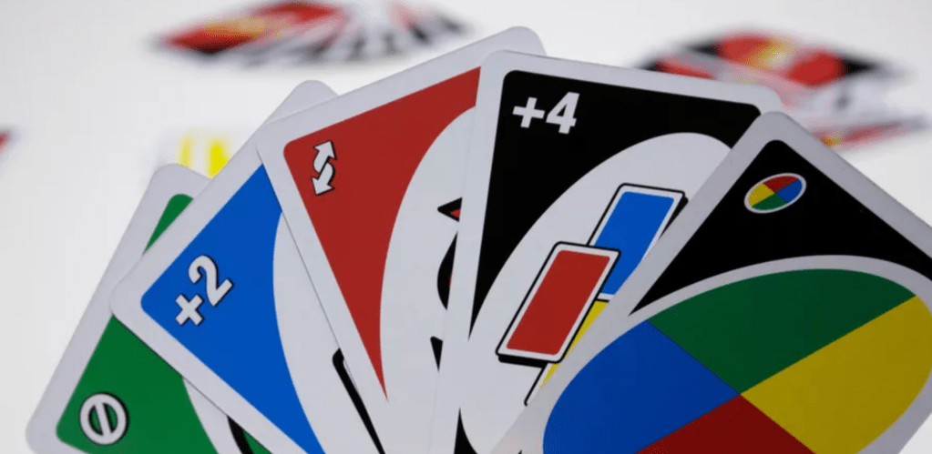 Seeing Cards Against Humanity makes me look again at a game like Uno. I wouldn’t say the design of Uno uses white space in such an extreme way, but I do see now that its minimalistic style really allows the core function of every card to shine. The visual design is perfect and leaves no confusion about the function of each card. I do think that the style plays a large part in this.