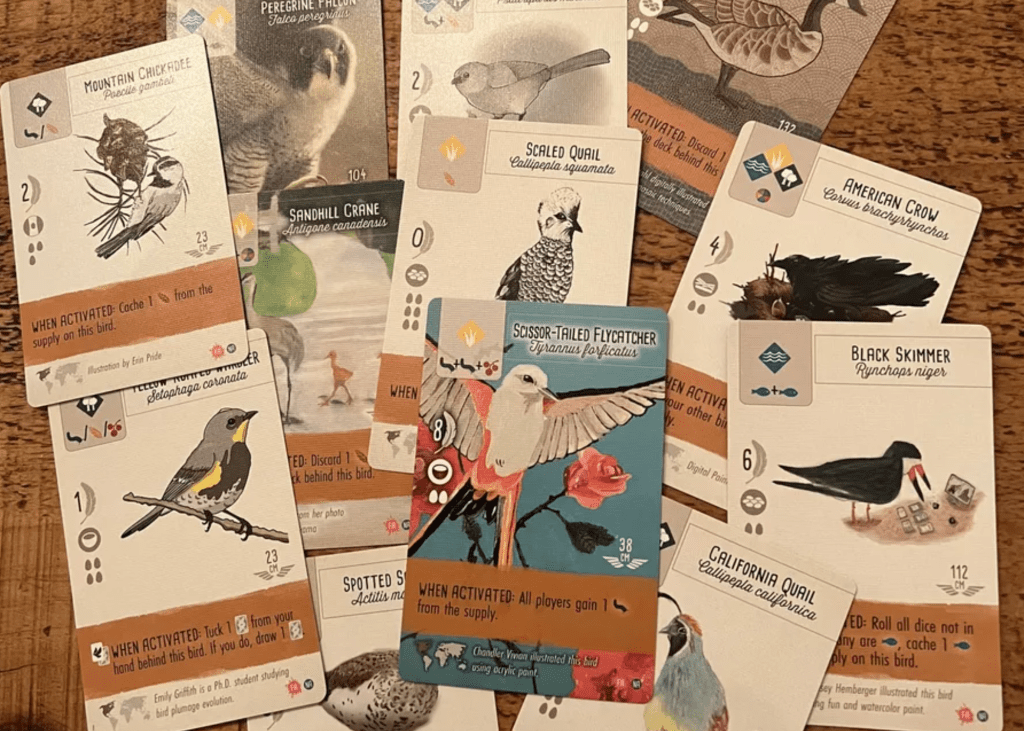 Wingspan demonstrates excellent icon design through its food resource system, which uses symbols that balance familiarity with game-specific needs. The five food types—seeds, berries, fish, rodents, and worms—each have distinct icons that appear throughout gameplay on bird cards, dice, and the player mat. While these specific resources are unique to Wingspan, their icons leverage familiar visual associations: seeds look like seeds, fish are recognizable fish shapes, and the color coding reinforces identification.