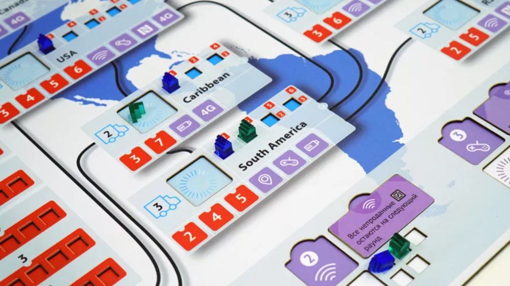 Smartphone Inc. has a lot going for it, and one way it shines is how related elements are so clearly connected. Instead of trying to cram everything into accurately sized country spaces, they created these pop-out rectangles to hold everything. This neatly collects all the things related to a country in one nice package that cannot be confused. It still has a “map” feel to it, thanks to the background. Each region has three types of things going on, and it’s nearly impossible to get them confused when playing the game.