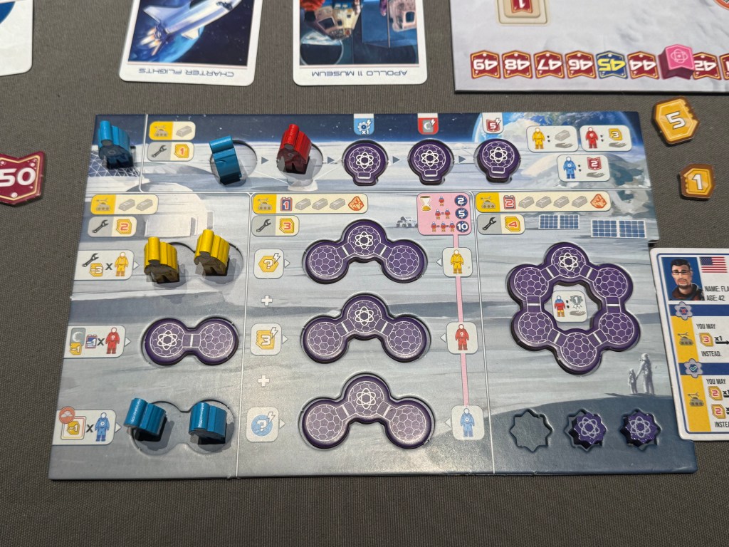 Revive, much like Shackleton Base, hides a mountain of complexity inside its player board. One detail I want to highlight is how it shows the interaction between the three main tracks that occupy the bulk of the board. The connections created by this spiral would not be manageable without the clear flow it has. The mechanics are natural and intuitive, making the game very player-friendly.