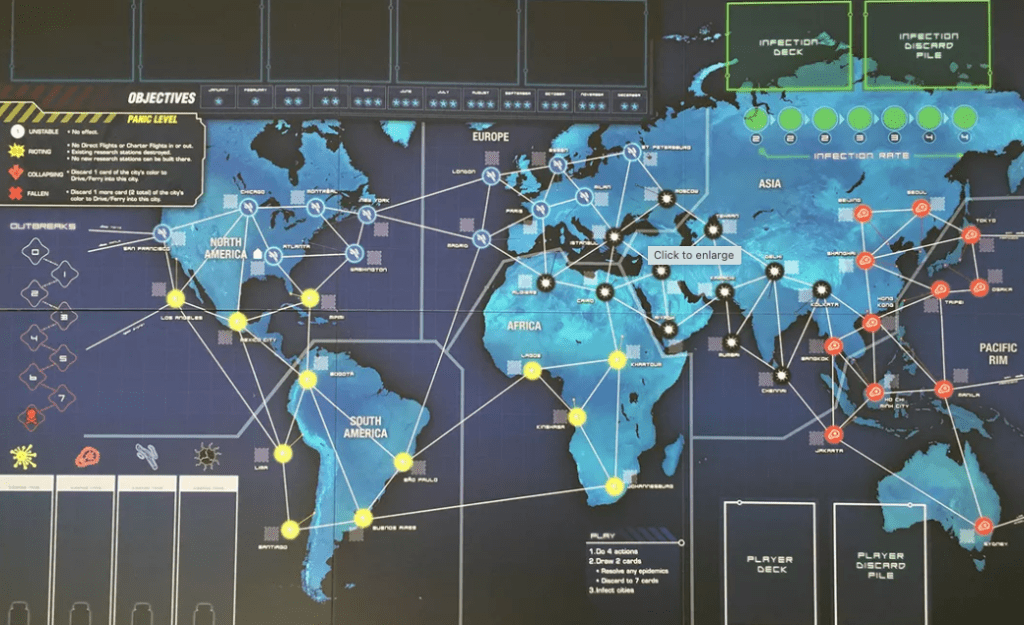 Legacy games are a very interesting game type to consider for the Serial Position Effect. Naturally, every game has a start and an end, and those are the most remembered parts of a game. But what about legacy games? When does a new game start and end? Sometimes that line is a little blurry, sometimes it’s fairly clear. Looking at a game like Pandemic Legacy, what marks those starting points? Obviously, when you start a new year (or even repeat a year), you have a starting point. But the real trick is that you get to open a box of goodies. That experience feels a lot like the first time you open a new game. I have yet to find anyone who didn’t love the moment of opening a new box and starting a game with new rules or components to interact with. These mid-campaign starting points are perhaps one of the primary reasons a legacy game keeps players interested.